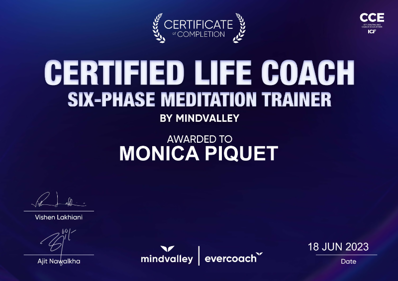Certified Life Coach Six Phase Meditation Trainer by Mindvalley
